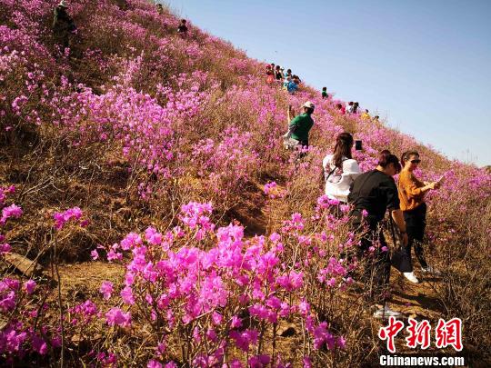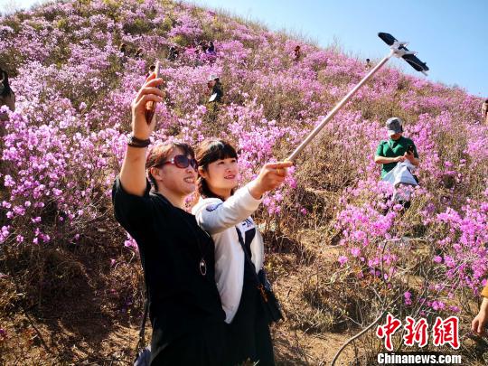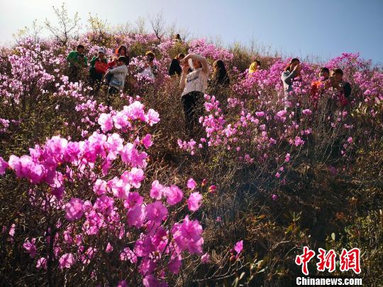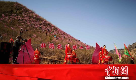 中新网承德4月25日电 (记者 张桂芹)又是一年春草绿,杜鹃花开映山红。4月25日,由河北省丰宁满族自治县(以下简称丰宁县)政府主办的首届山花节第二场“杜鹃花开映山红”主题活动在该县南关乡独立营村拉开帷幕。杜鹃花旁,舞蹈、民俗表演、国学诵读等表演活动吸引周边和京津等地数千名游客前来观赏游玩。