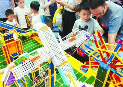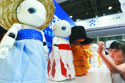 在参观世界机器人大会的观众中,孩子们绝对是最欢乐的群体,众多互动项目点亮了孩子们脑海中的机器人之光。在不久的将来,这些现在和机器人互动玩耍的孩子们也能点亮机器人世界的科技进步和产业发展。