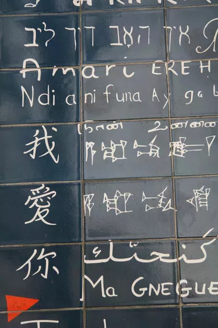 这面蒙马特爱墙以深蓝色为主基调,写满311种字体、280种语言的“我爱你”。