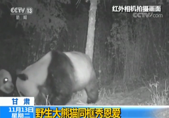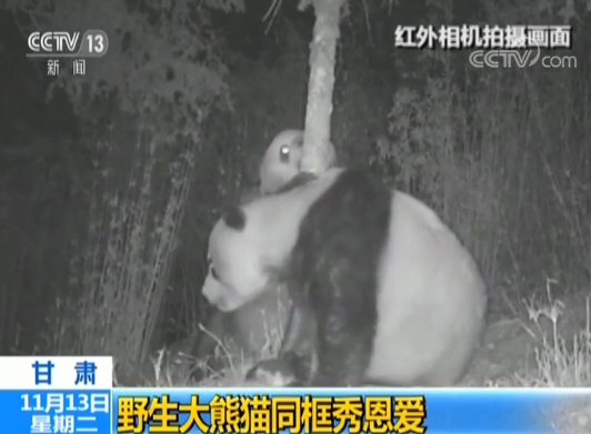 甘肃白水江国家级自然保护区管理局 大熊猫管理办公室主任 何礼文:从视频当中可以看到,这两只大熊猫非常亲密,出现了一些拥抱、一只(大熊)猫抚摸另外一只(大熊)猫的脸颊,还有一些预交配的情况,都出现在了画面中。这种野生大熊猫恋爱的过程,目前在国内的记录非常少。
