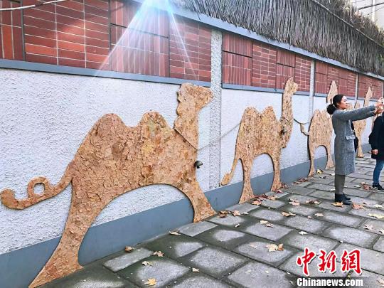 以“丝绸之路”为主题的落叶艺术。 王子涛 摄