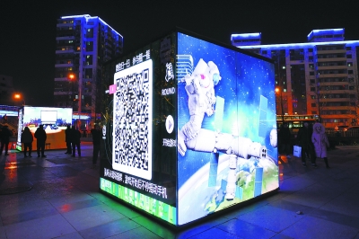 “屏立方”一面展示科技成果,一面供市民扫码参与互动游戏。