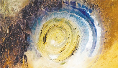 在人迹罕至的撒哈拉大沙漠西南部存在一种奇特的地貌,因其像沙漠里“长”着一只神秘的“巨眸”,故得名“撒哈拉之眼”。这个沙漠地形结构也被誉为全球十大最壮观的地质奇迹之一,与著名的墨西哥巨人水晶洞、土库曼斯坦的地狱之门、菲律宾巧克力山等齐名。