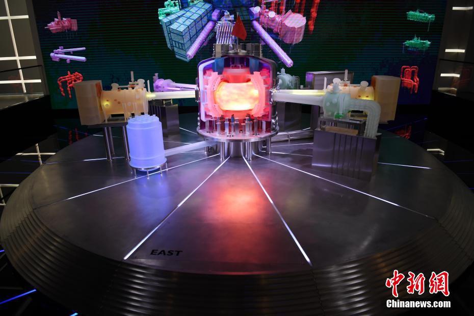 4月24日,中国首个5G智能馆和中国首个创新主题馆—安徽创新馆在合肥正式开馆。超导托卡马克装置、稳态强磁场、墨子号卫星、人造小太阳……在展区内1042件“高大上”的科技成果纷纷亮相。 图为“人造太阳”的全超导托卡马克核聚变实验装置。韩苏原 摄
