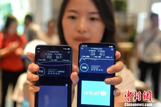 图为5G(左)、4G网络的现场速率测试结果。 洪坚鹏 摄