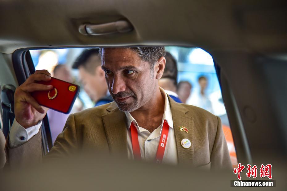 9月18日,第九中国-东盟(柳州)汽车工业博览会在广西柳州市开幕。当天,现场有超过300款车型集中展示,其中的VR设备和大学生方程式赛车等“新鲜物件”,吸引民众的眼球。此次的VR设备可将体验者悬吊在空中,进行沉浸式体验,吸引不少民众排队。而广西科技大学的大学生方程式赛车,则凭借超低坐姿和科技感的造型吸引了民众乘坐体验。图为展的外宾拍摄展出的车型的内饰。王以照 摄