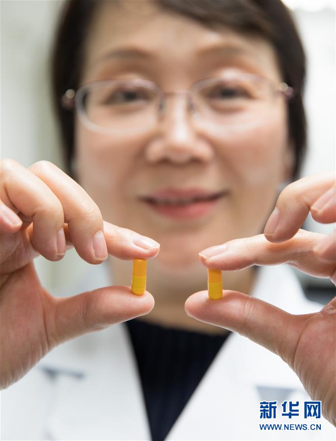 11月3日,新药主要发明人、中科院上海药物所研究员耿美玉向记者展示新药样品模型。 新华社记者 金立旺 摄