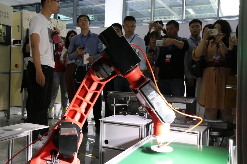 全国重点网络媒体在智觉智能视觉机器人展区。 武子渊 摄
