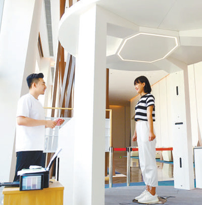顾客在沧州市明珠国际服装生态新城进行3D扫描量体。记者 史自强摄