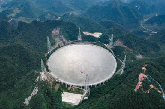 无人机拍摄的FAST。(新华社记者欧东衢摄)