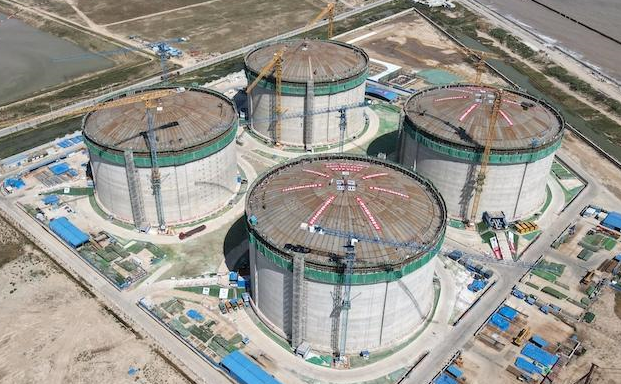 我国一次性建设规模最大的液化天然气国家储备基地——江苏液化天然气项目今天完成了4座22万方储罐的升顶作业,升顶成功标志着项目主体工程建成,正式投产后,300万吨年接收能力将对保障长三角地区天然气供应发挥重要作用。