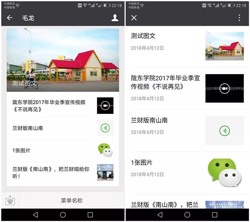 左侧为会话栏呈现效果,右侧为历史消息呈现效果