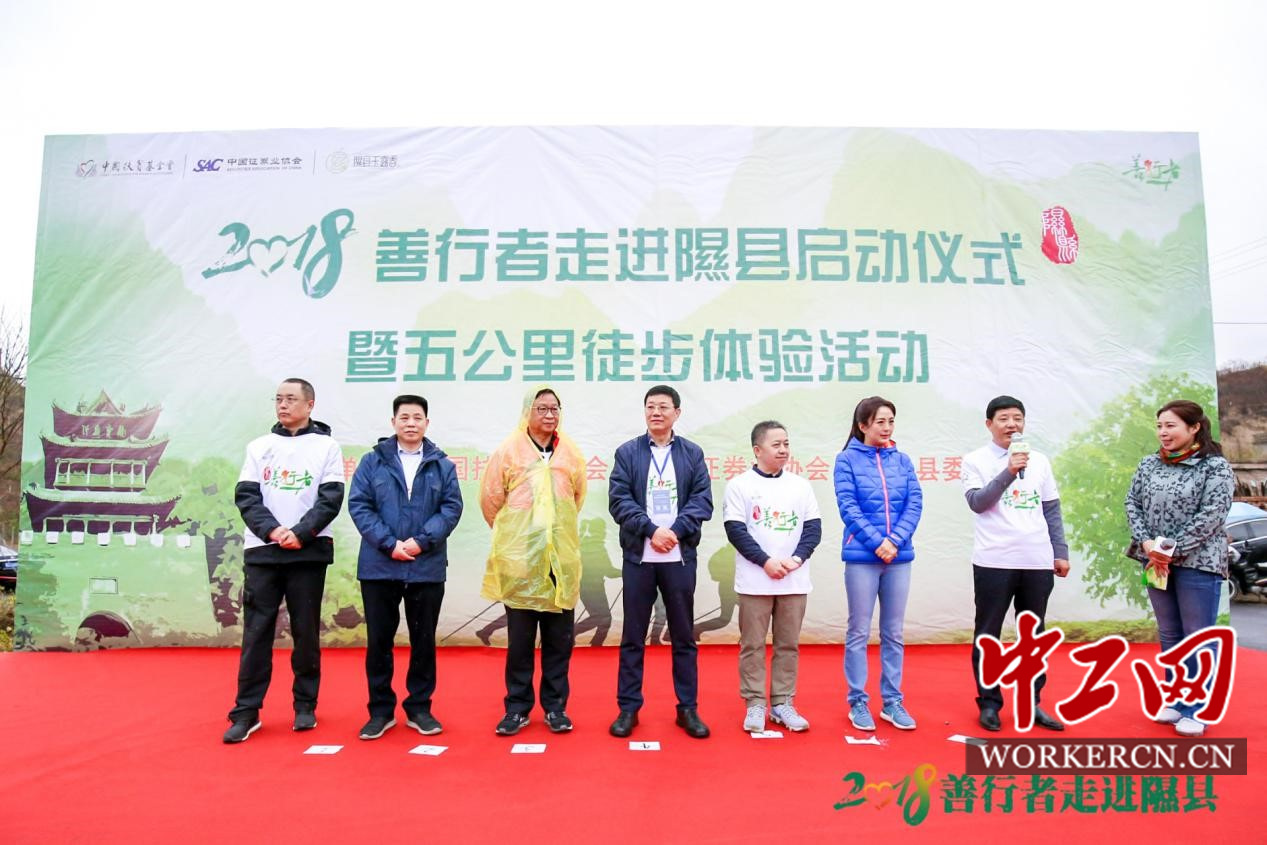 中工网讯(记者赵剑影)4月13日,2018善行者走进隰县启动仪式暨5公里徒步体验活动在山西隰县举行。中国证监会办公厅副主任曾彤,中国扶贫基金会副理事长兼秘书长刘文奎等出席此次活动启动仪式并见证,并进行了5公里徒步体验活动。