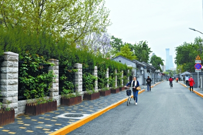 再往胡同里走,三处“口袋公园”点缀在胡同中。“这处口袋公园所在的位置以前被一家医院占据,圈成了自己的停车位。前面一处口袋公园以前是违建。”谷坡说,截止到本月,胡同内杂乱商铺从37个减少至6个,房屋性质全部都是正规的商业用途,保留下来的商铺也基本是便民便利店和正规饭店等与百姓生活相关的业态。而且,实行了“单行禁停”后,整条胡同的平均宽度达到了5米,最宽的地方甚至能拓宽至8米。