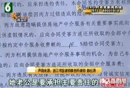 浙江丰国律师事务所律师 陈松涛:“这就是越权处分,因为这种重大的财产,属于夫妻共同财产,应该是两夫妻协商一致才能处置的,对买家和中介造成损失的话,她老公是要承担主要责任的。”