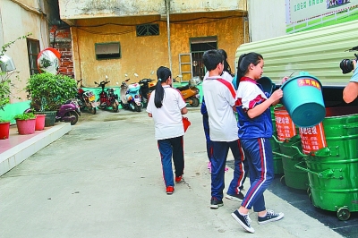 广西横县的学生在进行垃圾分类。莫璋摄/光明图片