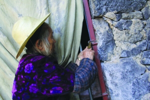 眼看要吃闭门羹,记者立即表明来意,老人这才转过头,面部表情也有所缓和,说道:“原来你们不是来劝我下山的哦,那进来坐坐!”