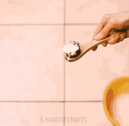 拿刷子蘸取一点清洁剂,刷在瓷砖的缝隙上,再用抹布擦干,轻轻松松就能变干净!