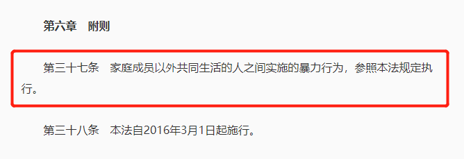 这就是说在中国,恋爱同居关系中的暴力,与婚内暴力相似,隐蔽性高,公权力不易察觉,也是被纳入家庭暴力,均受法律约束。