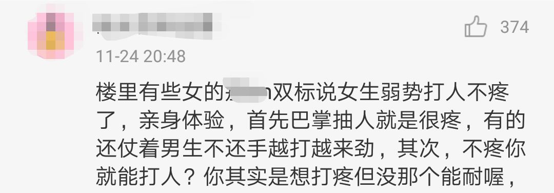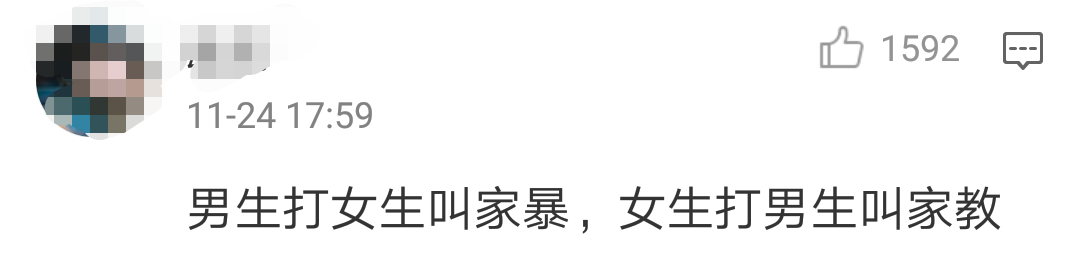 有网友抖机灵表示,“男生打女生叫家暴,女生打男生叫家教”↓↓↓