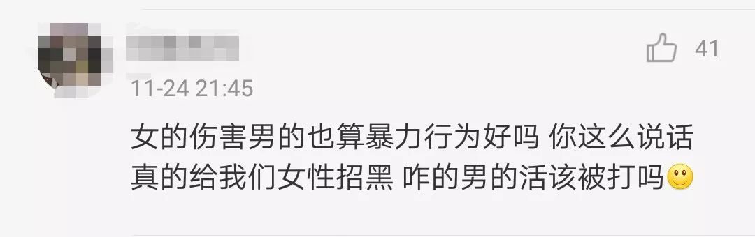 结果这一观点被其他网友回怼,“男的活该被打吗?”↓↓↓
