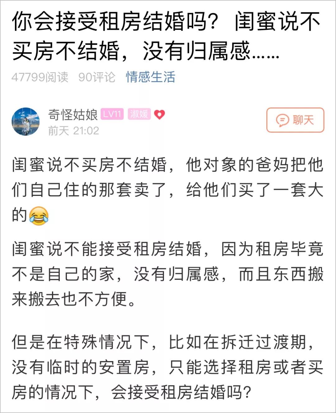 这两天,杭州一姑娘在网上发帖称“闺蜜不买房不结婚,租房没有归属感”……引发网友热议。
