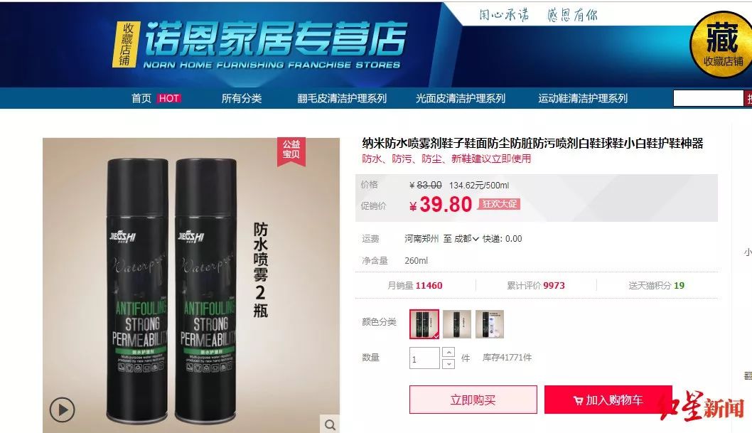 因为自己有很多双白色的鞋,在成都工作的梁先生接受了朋友的建议,去其推荐的一家淘宝店里购买一种名为“防水护理剂”的喷雾产品。