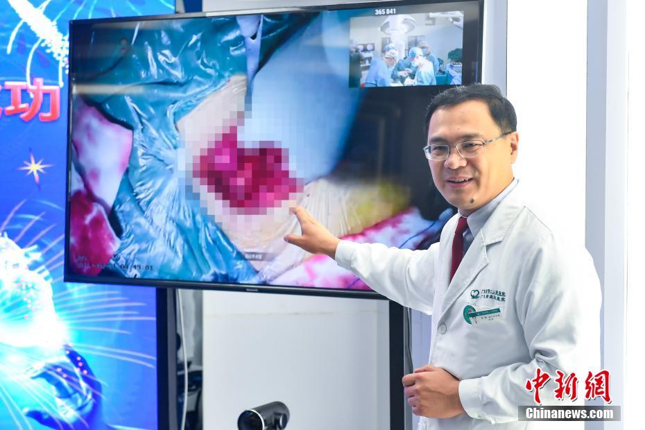 4月1日,广东省第二人民医院胸壁外科研究所所长王文林在镜头前完成一台治疗胸廓畸形的“Wang”手术,现场的手术细节通过5G信号和一套装有4K摄像头的手术系统直播传输到了阳山医院,让阳山医院医生学习“Wang”手术技巧。 当日,广东省第二人民医院与位于广东省清远市阳山县的广东省第二人民医院阳山医院完成端到端双向5G+4K远程手术直播。中新社发 钟欣 摄