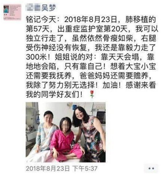2018年下半年,吴梦病情一直持续加重,到2019年2月初,只能靠呼吸机呼吸了。