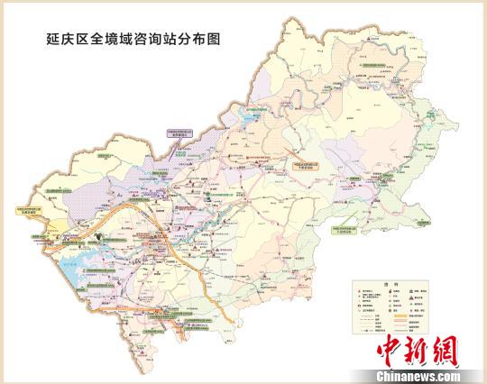 4月16日,北京延庆区举办“游延庆、逛世园、品花宴、宿花田”旅游信息发布会,还发布了全域旅游智慧服务系统、4条世园公交接驳专线和遍布全区的38个旅游咨询站点这三大出游攻略。图为延庆区全境域咨询站分布图。延庆区供图