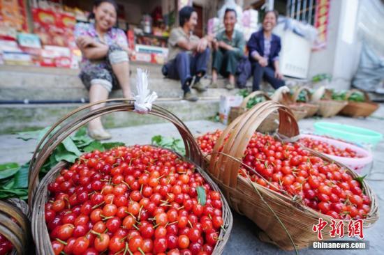 资料图:果农在出售樱桃。中新社记者 贺俊怡 摄