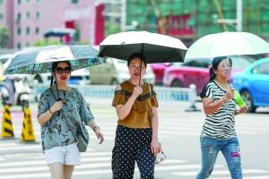 昨日午后太阳高照,市民纷纷打伞遮阳