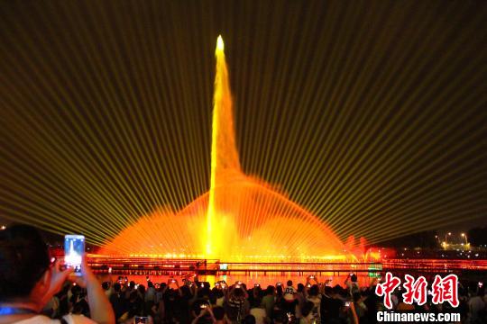 中新网沈阳7月26日电 (赵桂华)堪称辽宁省规模最大的水上炫彩音乐喷泉,7月25日晚在沈阳市浑南区中央公园水秀湖广场开幕,这是继6月初沈阳首条炫彩跑道带火当地夜经济之后,又一处网红打卡地。