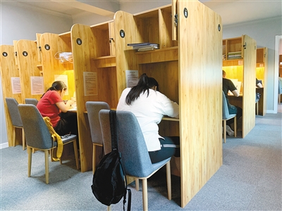 在小寨附近的一家共享自习室内,一位正在读书的白领小陈告诉记者,自己工作已经几年了,因为对工作现状不太满意,于是就有了出国留学深造的打算,可是一直苦于没有一个合适的学习场所。“到大学去和学弟学妹抢图书馆和自习室根本不现实,回家的话容易被各种因素干扰,咖啡馆又只是休闲的地方,环境比较嘈杂。”小陈说,后来在网上搜到了一家共享自习室,体验后觉得环境各方面都不错,就选择了长期租赁独立包间,每天定时定点来学习。