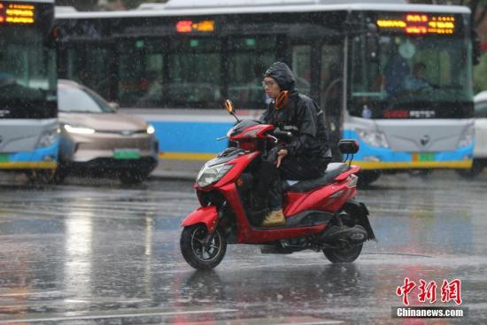 资料图:民众冒雨出行。中新社记者 杨可佳 摄