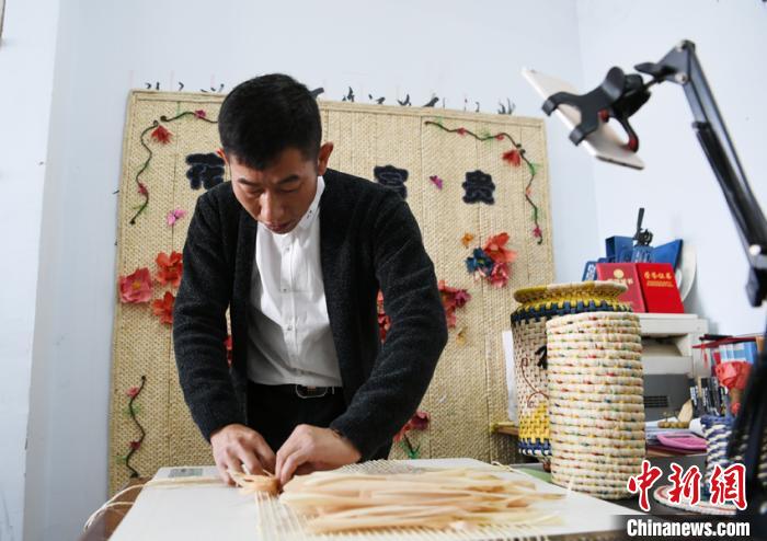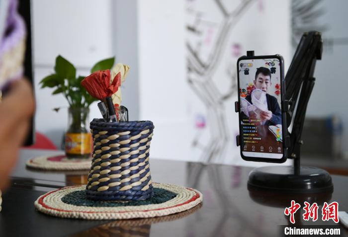 中新网长春11月7日电 (孙博妍)“现在教大家做的是编挂件,先用平编编一个方块,然后四圈用反正绞编去圈圈……”7日,位于吉林长春莲花山的一处草编工作室内,于建华通过网络直播平台,向网友传授草编的制作技巧。