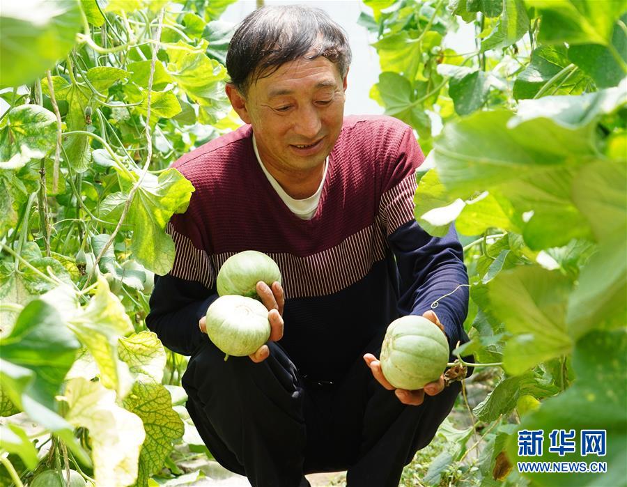 5月23日,马湾村村民马有恩在自己租种的大棚内采摘香瓜。新华社记者 邵瑞 摄