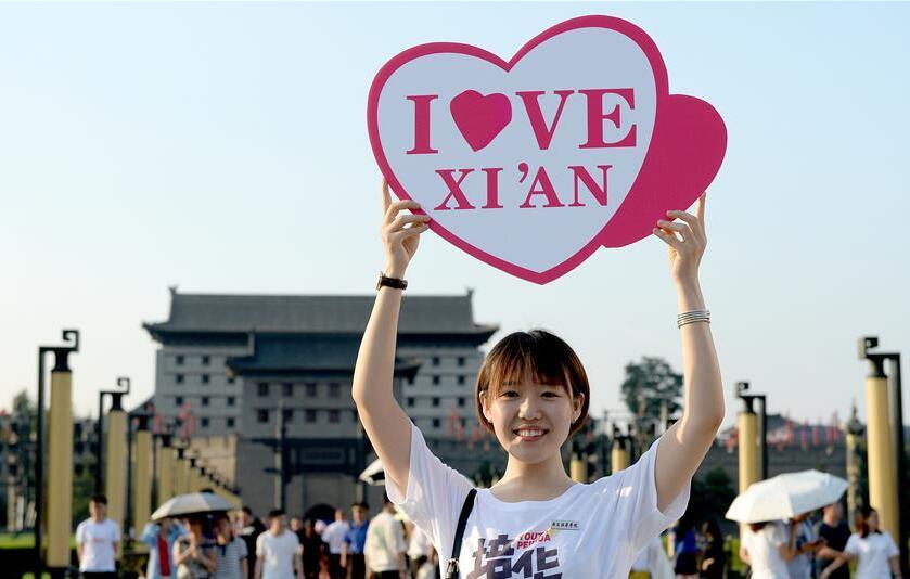 “2018西安大学生毕业盛典”在西安永宁门举行,20所高校的350名毕业生代表汇聚在古老的明城墙下参加庆典活动。