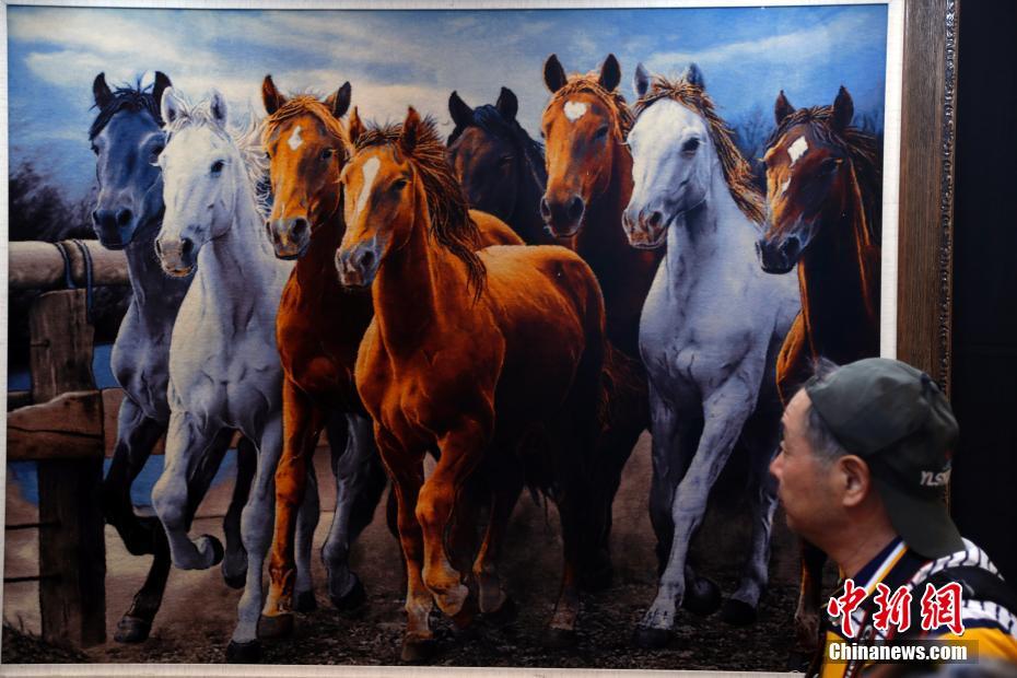 伊朗手工画毯吸引参观者驻足欣赏。中新社记者 汤彦俊 摄