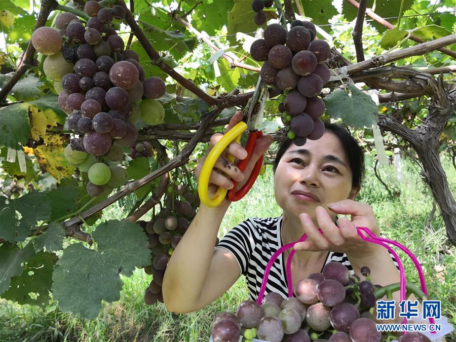 8月30日,游客在湖州市南浔区练市镇森赫生态农业园采摘葡萄。 近年来,浙江省湖州市围绕“产业兴旺”的总体要求,以农业供给侧结构性改革为主线,以绿色生态发展为引领,推动农业增效、农民增收、农村增绿。 新华社记者 王小川摄