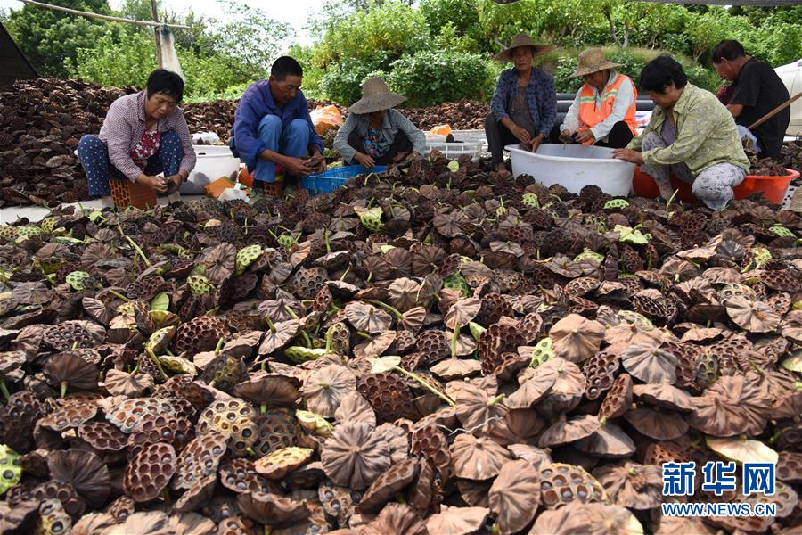 8月30日,湖州市南浔区石淙镇仁麦农业科技园农民正在手剥莲子。 近年来,浙江省湖州市围绕“产业兴旺”的总体要求,以农业供给侧结构性改革为主线,以绿色生态发展为引领,推动农业增效、农民增收、农村增绿。 新华社发(施立农摄)