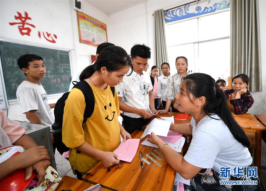 9月1日,梁宏月独自来到30多公里外的新学校注册报到。 新华社发(黎寒池 摄)