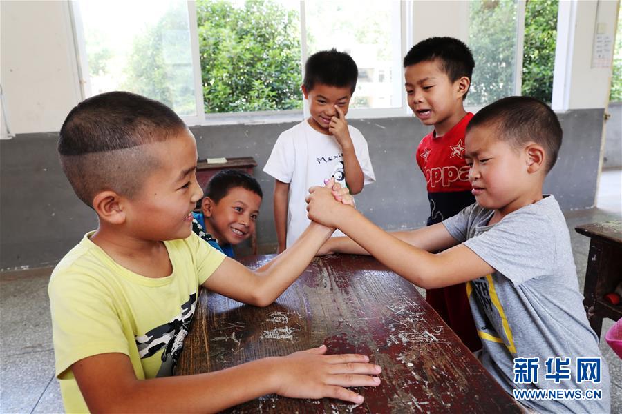 9月3日,重庆市黔江区石家镇渗坝小学的学生在课间做游戏。重庆市黔江区石家镇渗坝小学是一所大山里的“微小学”,9月3日,这所“微小学”迎来了新学期。这学期3名老师承担了9名学生的教学工作,其中二年级学生3名、三年级学生6名。新华社发 杨敏 摄