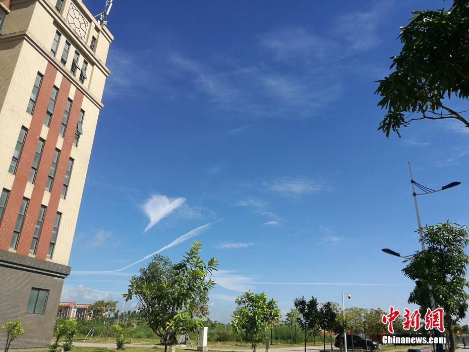 9月5日,广西钦州市天空中出现一团巨大的心形云,有网友笑称,比心,天空都恋爱了,连云朵都是爱你的形状。这朵“爱心云”出现后,刷爆了当地网友的朋友圈。