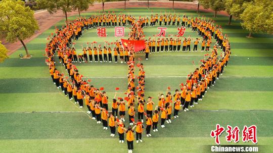 9月27日,江西省泰和县实验小学举行喜迎新中国成立69周年庆祝活动。在国庆佳节来临之际,泰和县实验小学学生开展大课间活动,列队摆出巨型心形图案,寓意祖国在我心中,爱心中的数字“69”代表新中国成立69周年,学生们以独特的方式来表达对祖国的热爱和祝福之情。