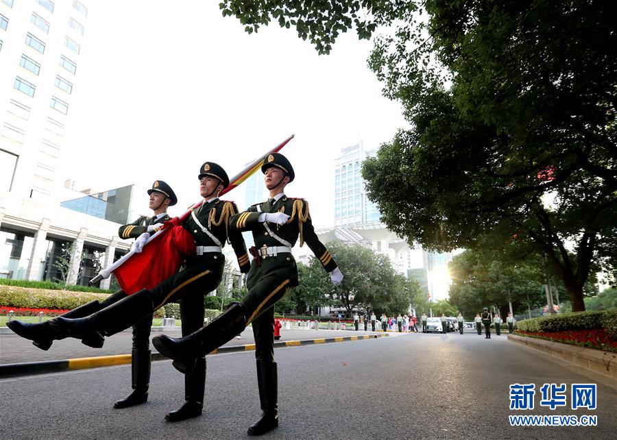 10月1日在上海市人民广场拍摄的升旗仪式。 当日,全国多地举行升国旗仪式,庆祝中华人民共和国成立69周年。 新华社记者 陈飞 摄
