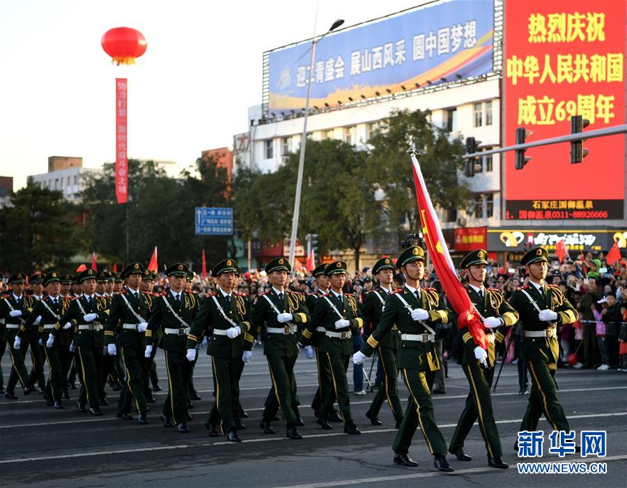 10月1日拍摄的在山西省太原市举行的国庆升旗仪式。 当日,全国多地举行升国旗仪式,庆祝中华人民共和国成立69周年。 新华社记者 杨晨光 摄