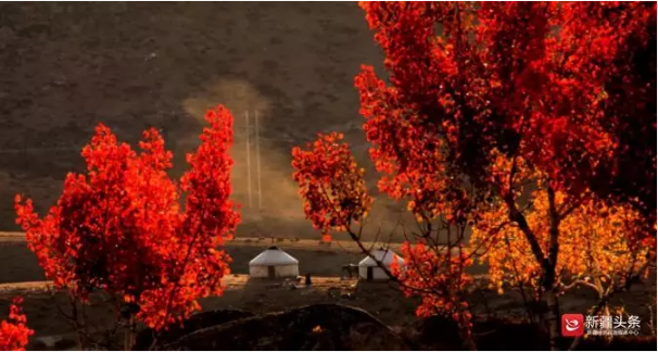 富蕴县周边的红叶沟秋霜染过,如油画一般。图/丁宁