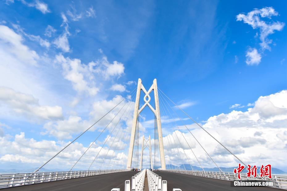港珠澳大桥将于10月24日通车运营。港珠澳大桥整个项目包括海中桥隧主体工程、香港连接线、香港口岸、珠海连接线、澳门连接线和珠海澳门口岸,总长约55公里,是世界总体跨度最长、钢结构桥体最长、海底沉管隧道最长的跨海大桥。图为港珠澳大桥青州航道桥。(资料图片) 中新社记者 陈骥旻 摄