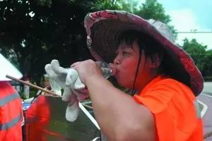 “城市美容师”.林秀来趴车下清扫垃圾。为“最美环卫工”。杂物垃圾别再随意丢弃了.爱护环境,人人有责!